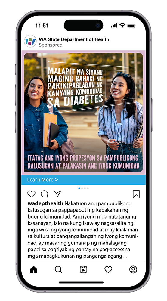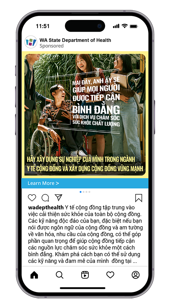 “Build Your Career in Public Health and Strengthen Your Community” posters and social media posts we created, translated into five Asian languages.