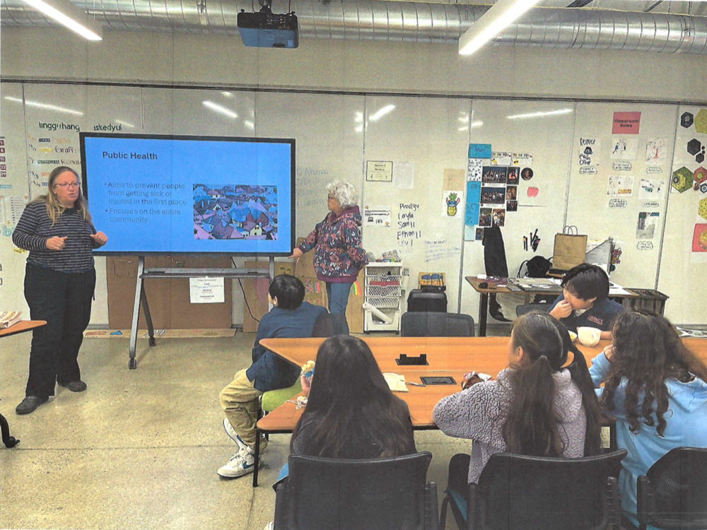 Korean Community Service Center’s presentation, Public Health and Relevant Careers, and their information table sharing public health materials.